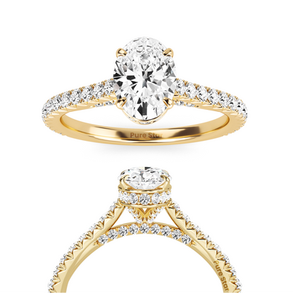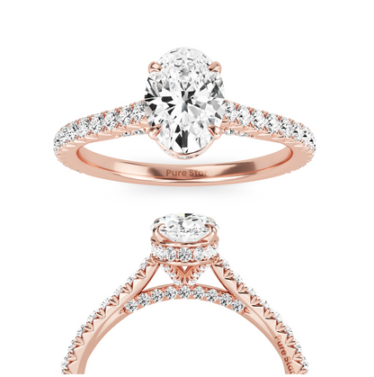 Hidden Helo Oval Cut Lab Grown Band Ring